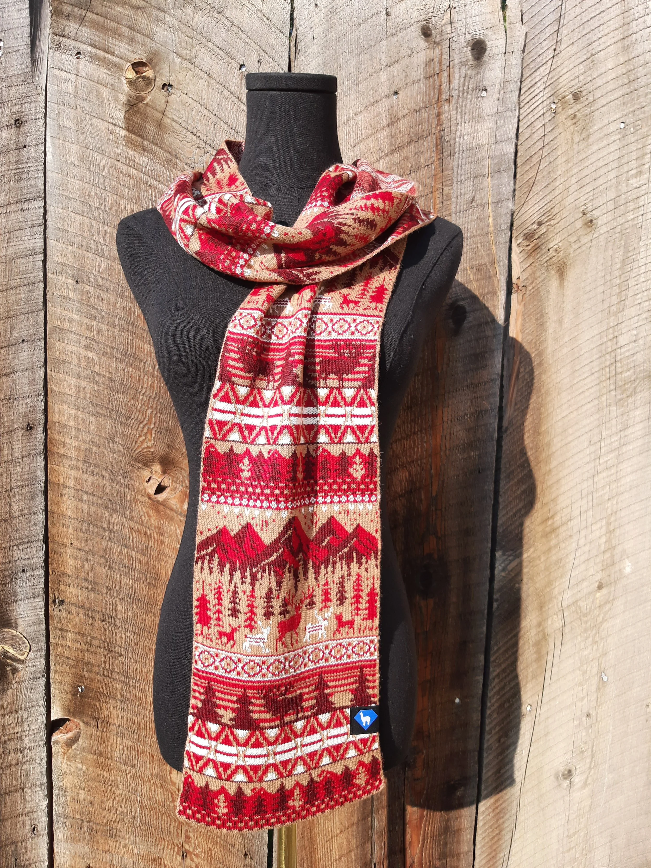 Celebrate the Rockies’ grandeur with our 100% alpaca knit scarf featuring the majestic elk. This piece captures the essence of the wilderness in every stitch.
